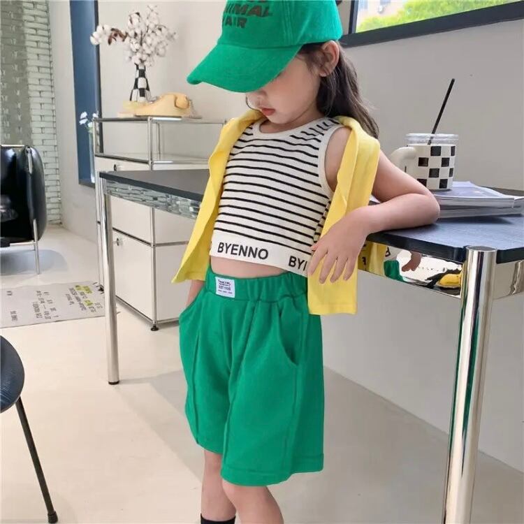 グリーンのパンツが可愛いショート丈ノースリーブのセット♡